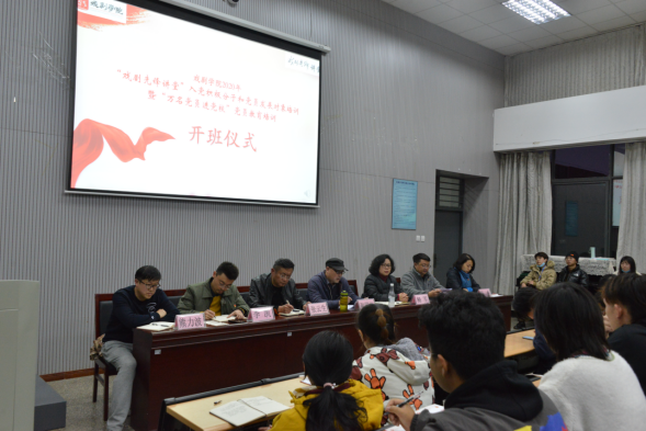12月3日晚18:30,在伟德国际victor1946四楼阶梯教室举行了2020年“戏剧先锋讲堂”入党积极分子和党员发展对象培训暨“万名党员进党校”党员教育培训班开班式。公司党委书记张国岗、副经理(主持工作)杨军、党委副书记张云生,及党政班子成员、各科室、系部负责人出席了开班仪式,全院申请入党的先进分子、2020年确定的入党积极分子、2020年确定的发展对象、2020年接收的预备党员和全体党员200余人参加了开班式。